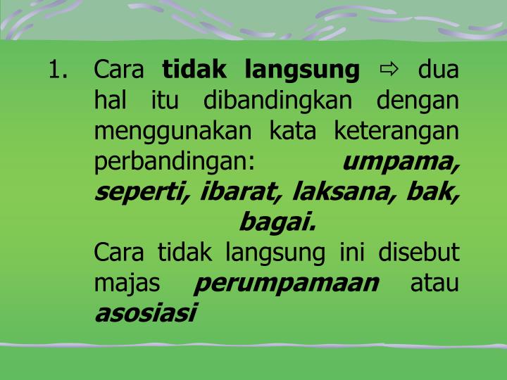 2.8 mendaftar kalimat bermajas daftarlah kalimat yang menunjukkan penggunaan majas (asosiasi menggunakan kata seperti dan memberi sifat .